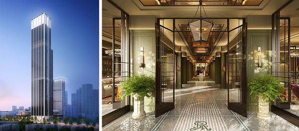 武汉丽思卡尔顿酒店(效果图)、伦敦瑞吉酒店大堂门口(效果图)