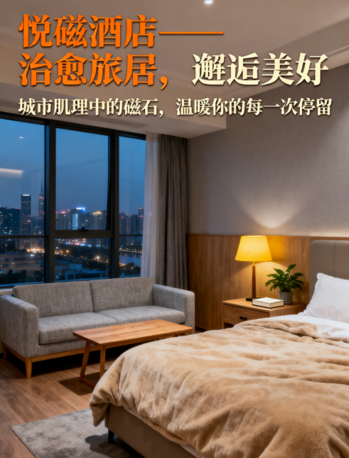 悦磁酒店选址城市核心商圈,步行十分钟可达地铁站,周边聚集高端购物中心、特色餐饮街区,无论是商务出行还是休闲旅游,都能尽享便捷。酒店定期举办磁艺工坊、美学讲座等主题活动,邀请住客亲手制作磁质手作、聆听设计大咖分享,让旅居生活充满仪式感。在这里,每一处细节都暗藏巧思,每一次体验都温暖入心,悦磁酒店,用磁石般的魅力,让你在陌生的城市里,找到归属感与幸福感。