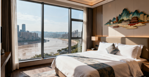 当嘉陵江的晚风拂过窗棂,当洪崖洞的灯火点亮夜空,重庆港誉酒店正以绝佳的地理位置,为你铺展一幅沉浸式的雾都画卷。酒店坐落于核心滨江路段,步行 5 分钟即达朝天门广场,10 分钟车程可抵解放碑商圈,无论是打卡网红地标还是漫游老重庆街巷,都能轻松开启旅程。推开客房落地窗,滔滔江水与错落山城景观尽收眼底,晨起看江面薄雾氤氲,夜幕赏两岸灯光璀璨,每一刻都是专属重庆的浪漫。